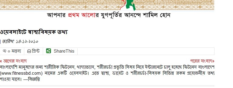 অনলাইন প্রথম আলো পত্রিকার লিঙ্কে ক্লিক করে দেখুন ফিটনেস বাংলাদেশের খবর|