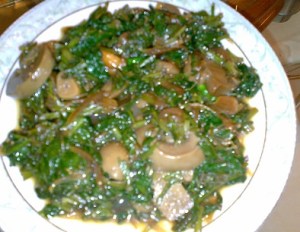 - পালংশাকের পানি শুকিয়ে গেলে ও শাক নরম হয়ে গেলে, মাশরুম দিন|
